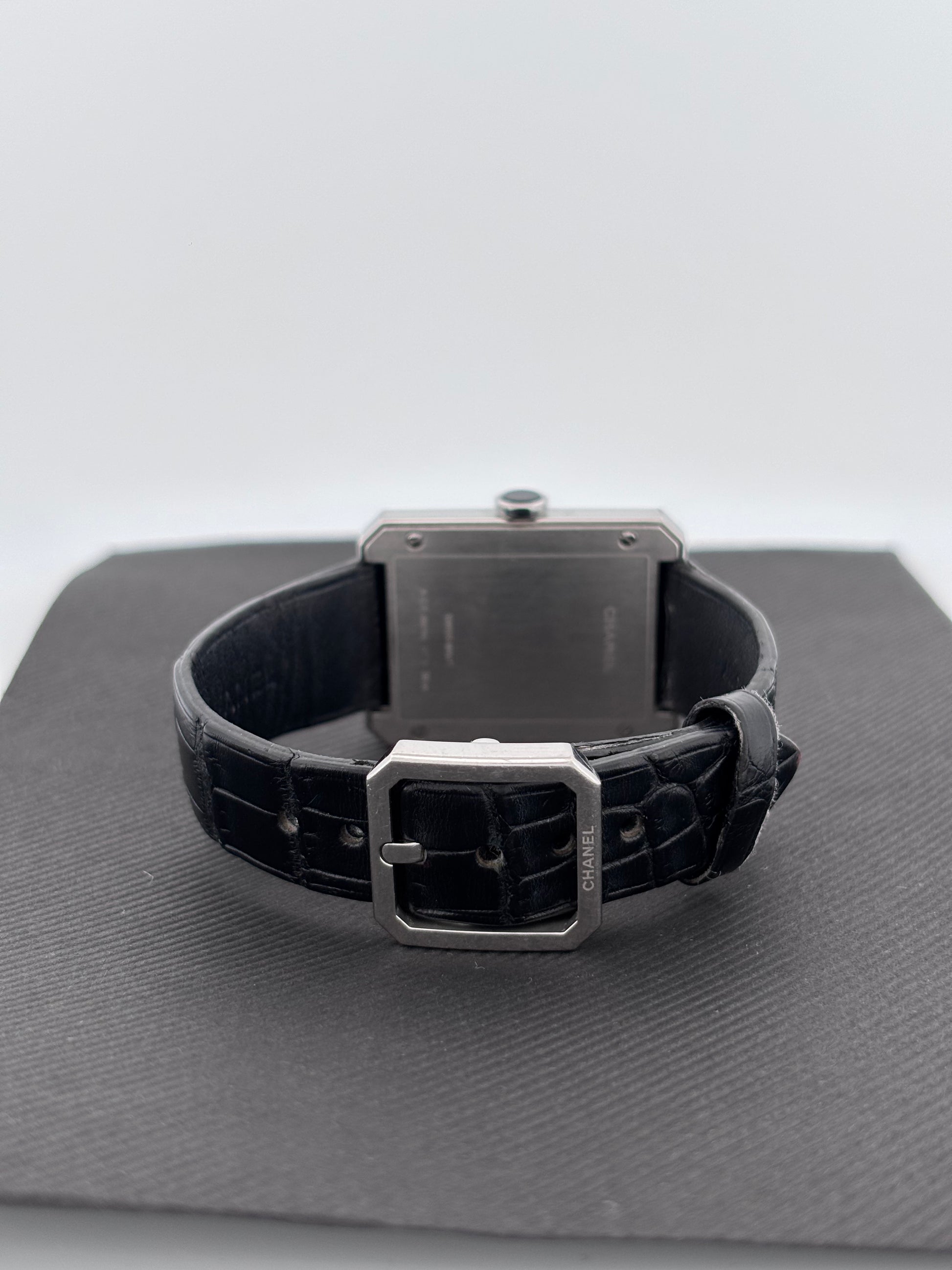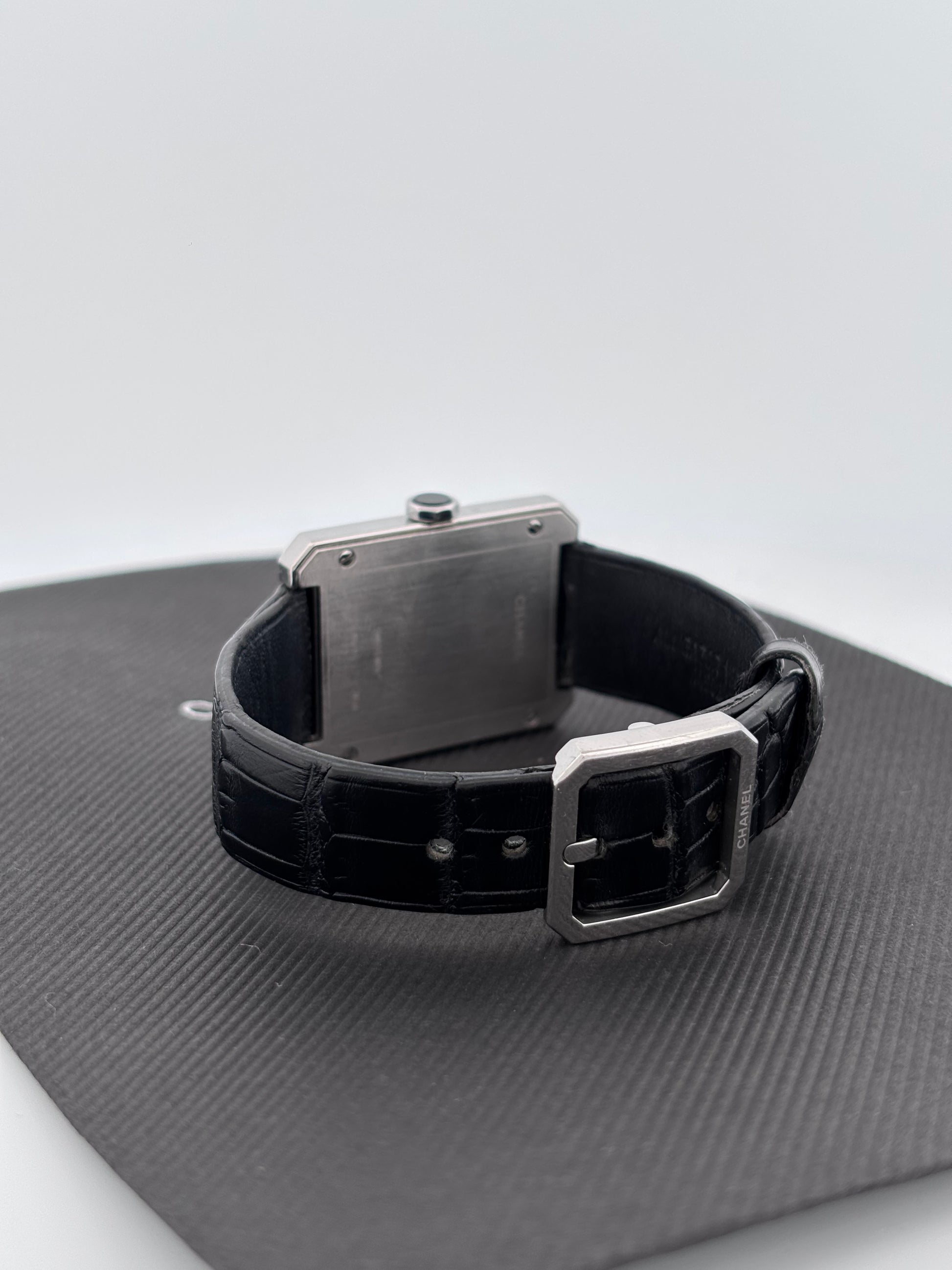 - Bracelet : Cuir alligator noir, boucle ardillon signée Chanel
