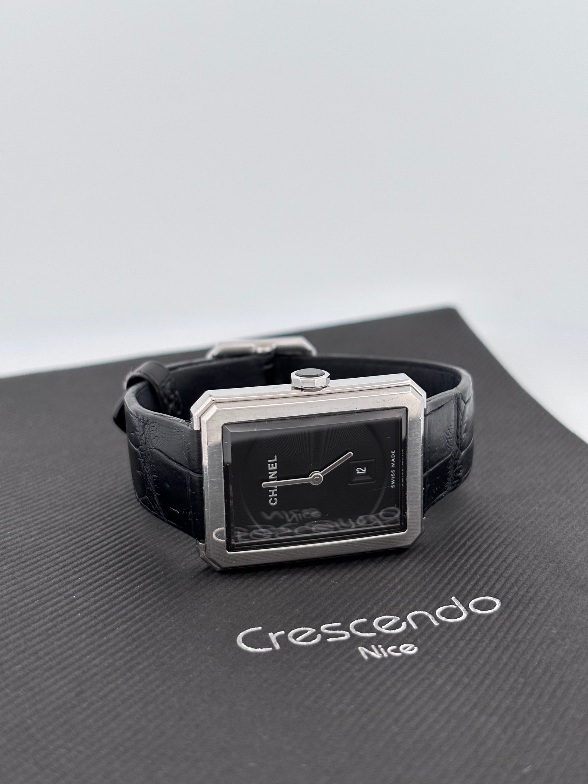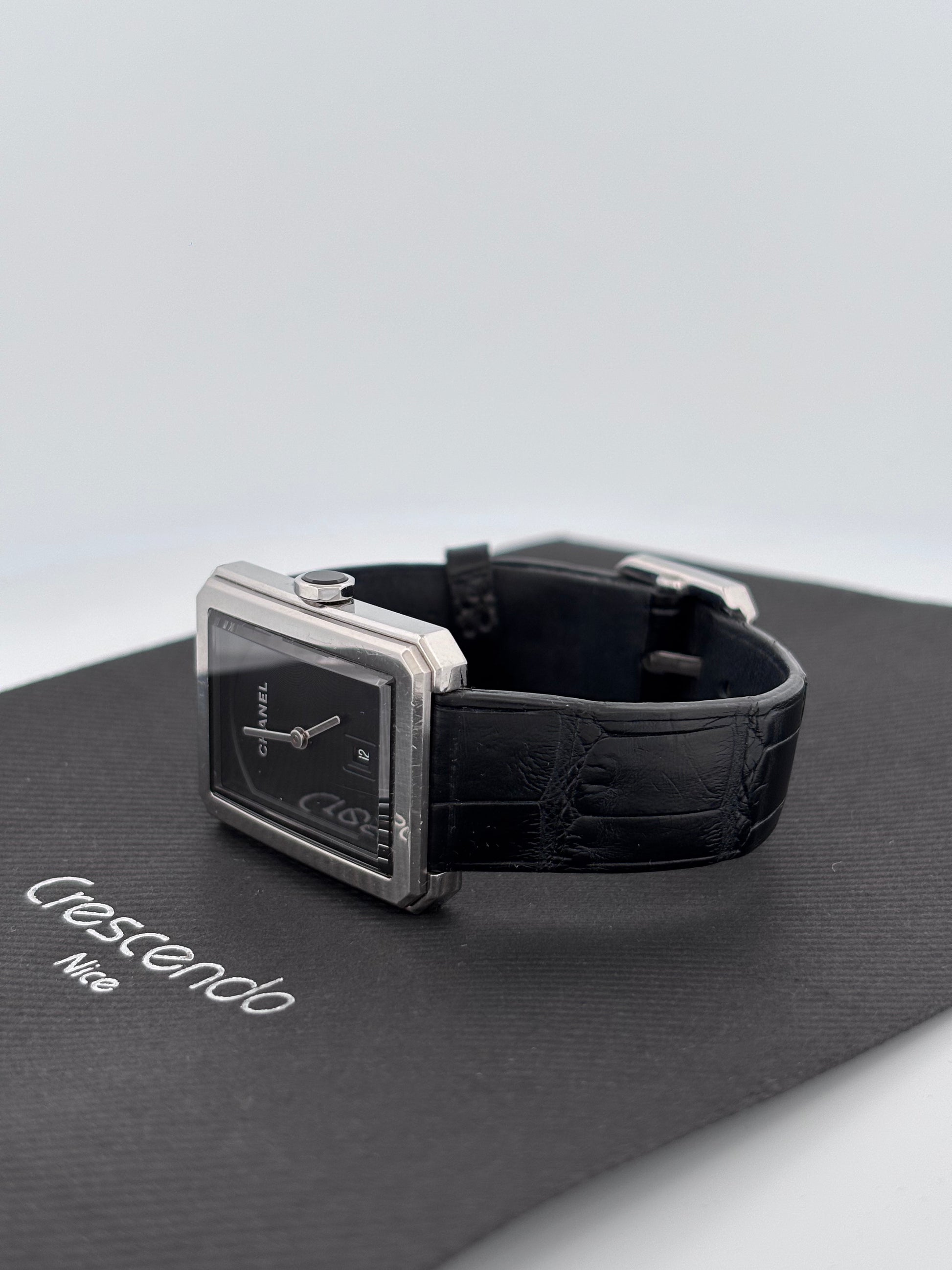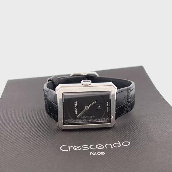 CHANEL | Montre Boy·Friend | Acier | Cadran noir laqué | Bracelet cuir alligator noir