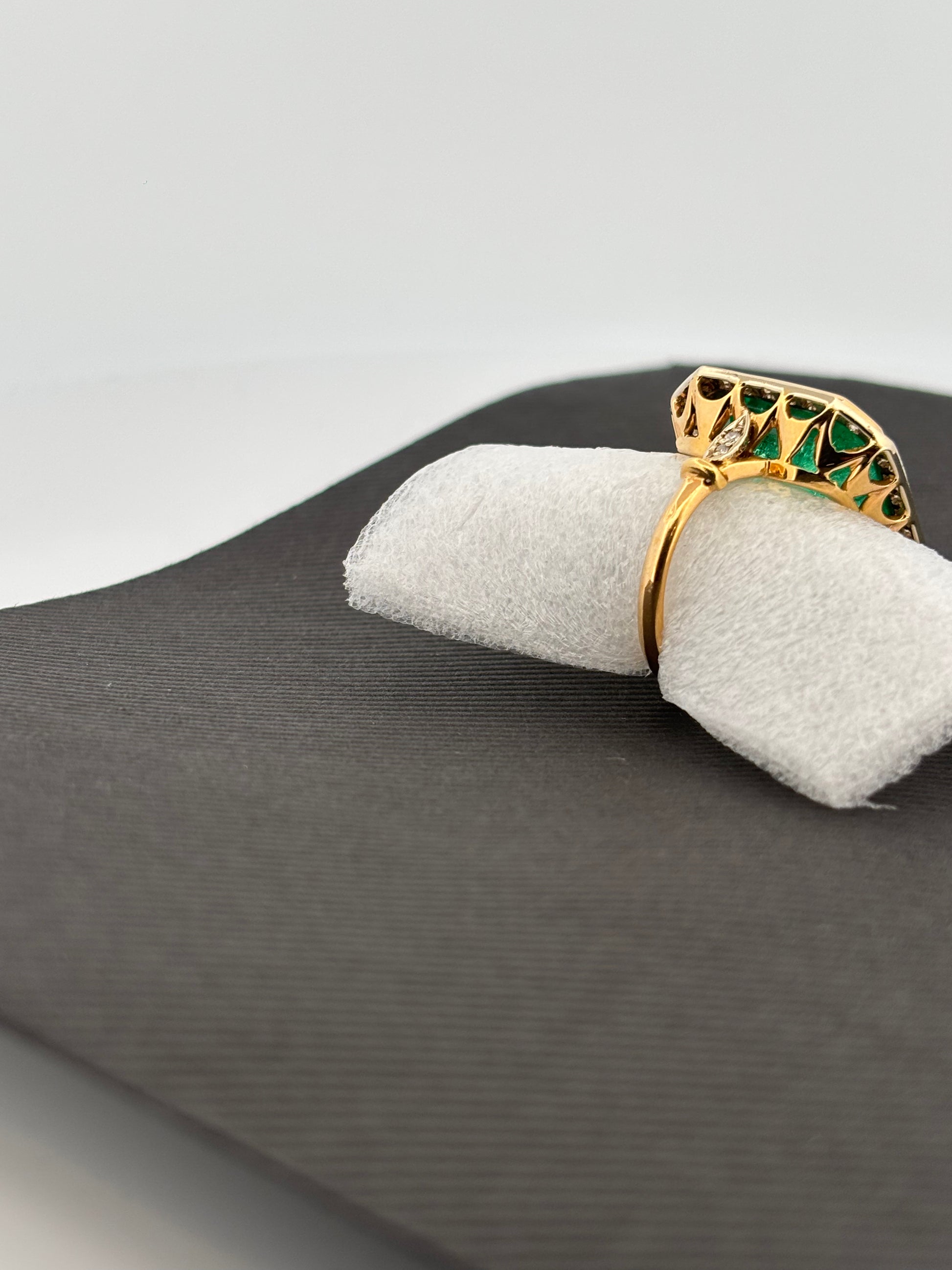 ✓ Taillée en carré à pans coupés, elle révèle la profondeur d’un vert pur aux reflets intenses. Les proportions harmonieuses et la surface parfaitement équilibrée confèrent à cette émeraude une élégance naturelle et un éclat unique.