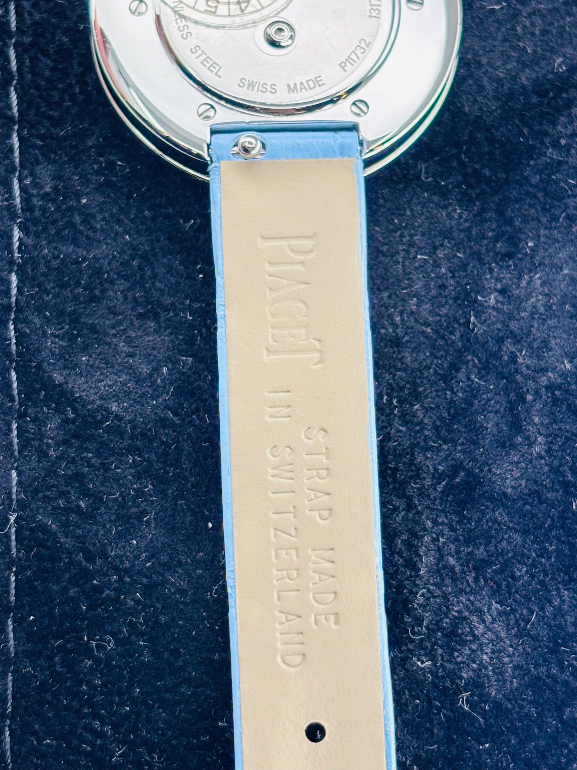 • Bracelet alligator bleu interchangeable avec boucle ardillon Piaget.