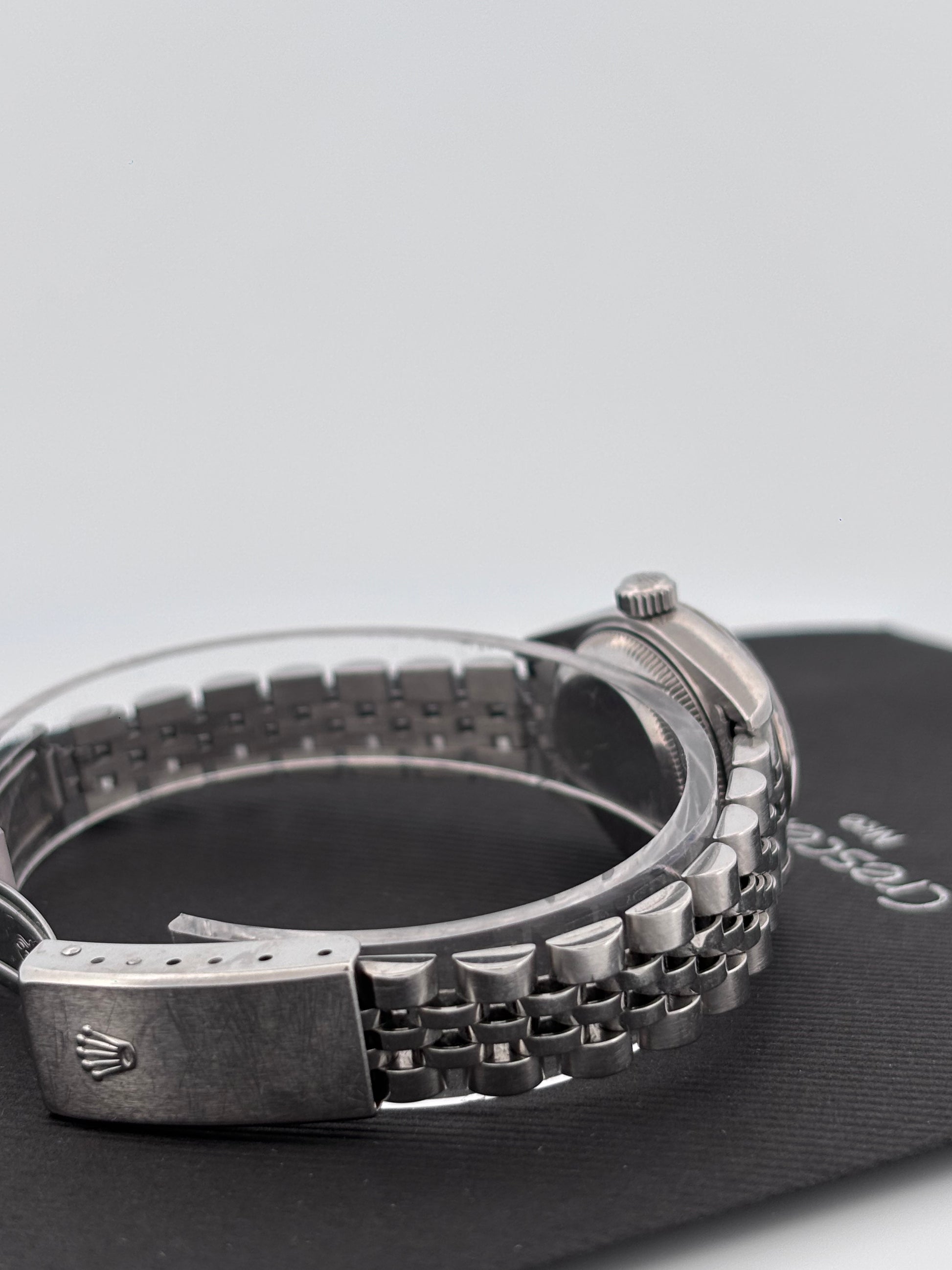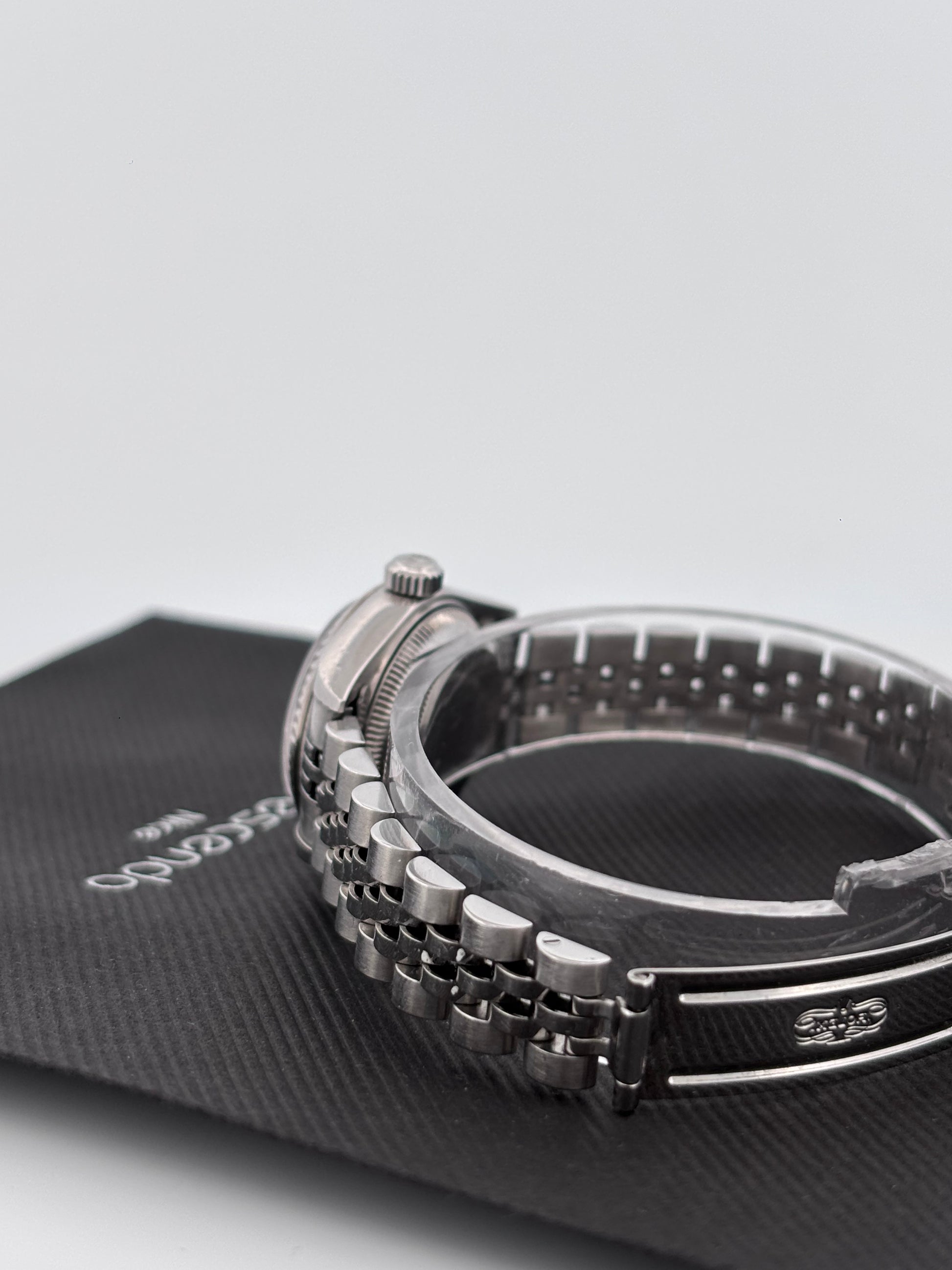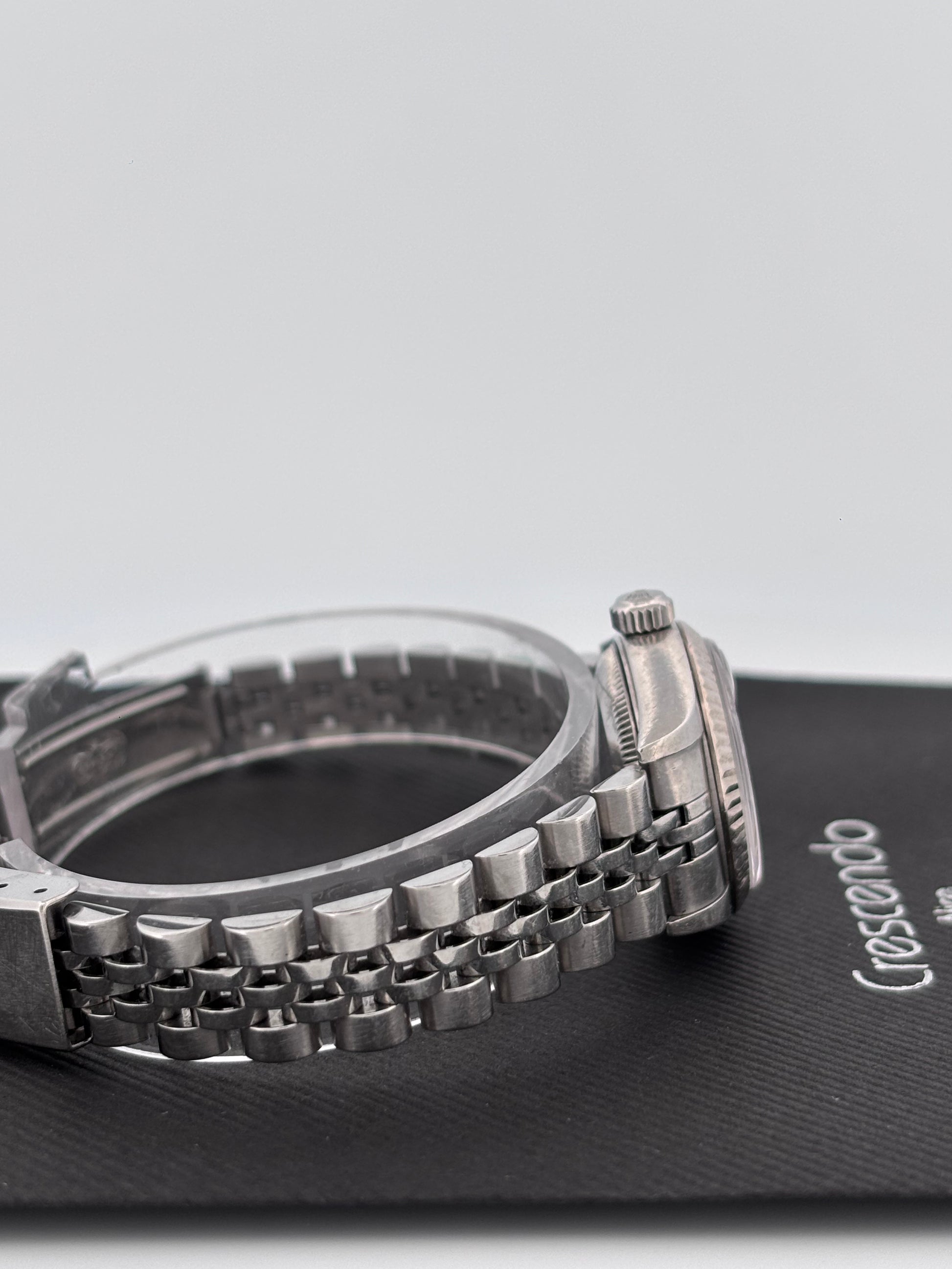 Élégante, intemporelle et iconique, cette Rolex Lady-Datejust 26 mm réf. 69174 associe la robustesse de l’acier à la noblesse de l’or blanc 18K.