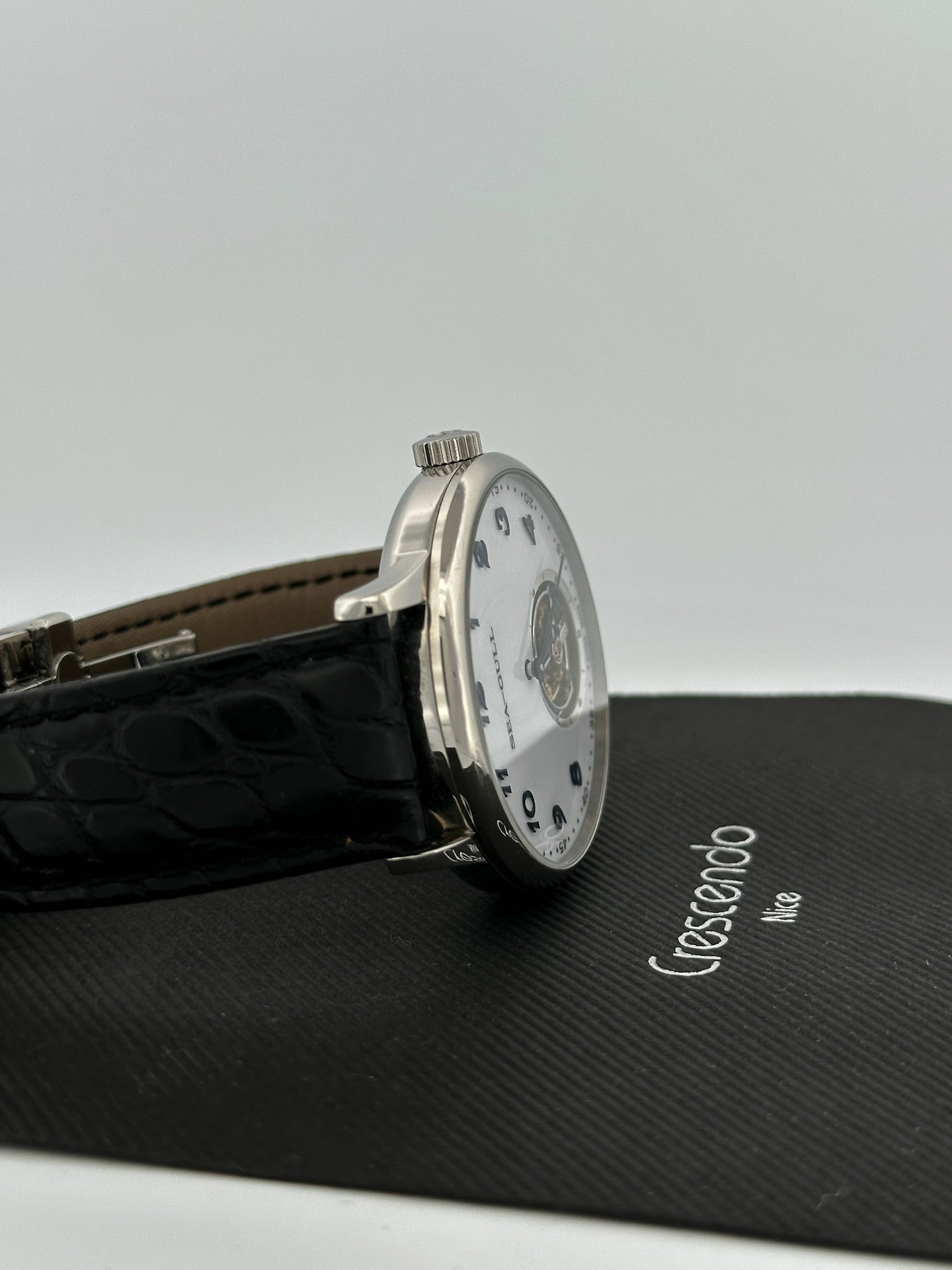 - Mouvement : Calibre ST8000, mécanique à remontage manuel, tourbillon apparent à 6 h